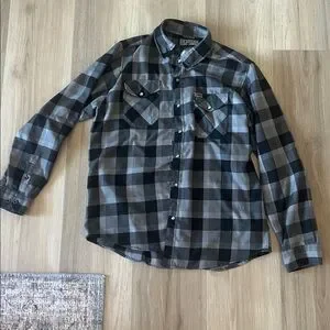 DIXXON flannel with a monochrome plaid pattern. Button-up style.