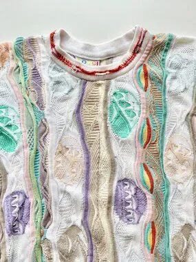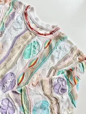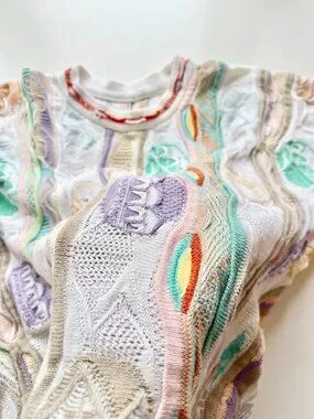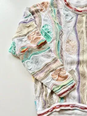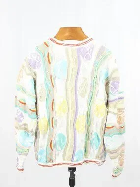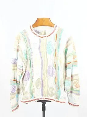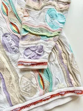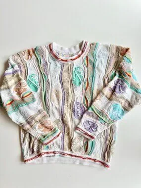 Vintage 90's COOGI White Pastel Easter Egg Cotton Knit Sweater, Size S