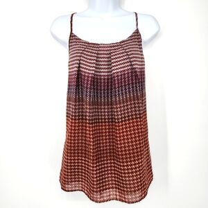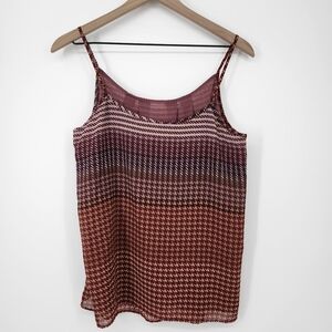 CAbi Womens Camisole Top Size M Maroon Oxblood Houndstooth Chiffon Flowy