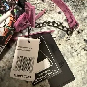 Stylish pink floral shoulder bag with skull accents. Eye-catching floral and skull print with studded medallion detail. Comfortable pink strap and polished hardware for everyday use. Perfect for adding edgy femininity to any outfit. NWT