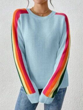 Women's Colorful Rainbow Striped Casual Crewneck Sweater Long-SleeveTops