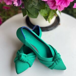 Ladies, you need this pair of shoes this summer!! It’s a conversation piece and got so many compliments! Like new condition, worn a couple times! Gorgeous Rothy's flats in a vibrant green knit. Pointed toe with decorative knot detail. Slip-on style with cushioned insole. Machine-washable textile construction.