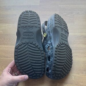 Official Crocs clog with Jack Skellington character medallions. Allover skull-print pattern for themed style. Ventilation holes and heel strap for secure, breathable wear. Lightweight and easy to slip on.