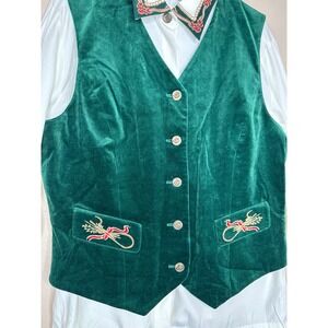 Keywords: Susan Bristol, Velvet Vest, Embroidered Vest, Holiday Vest, Christmas Vest, Vintage Vest, Green Vest, Womens Vest, Size 16, Party Vest, Festive Clothing, Retro Top, Embroidered Top, Vintage Clothing