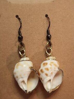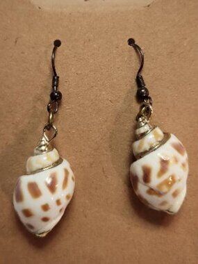 These tiger conch earrings are made from natural, speckled