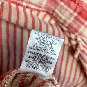 Salmon pink/orange full button front shirt. I am unsure what brand this is, but it is a size medium. Lightly double layer lined top. Has button cuffs for rolling sleeves. Excellent used condition. Smoke free home with fast shipping!