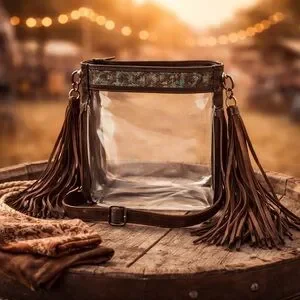 Edgy meets Western charm in this standout tooled stadium handbag. The clear body design adds a modern twist, while intricate hand tooled leather detailing and playful fringe bring a rugged, free-spirited vibe. Perfect for concerts, rodeos, or game days, this hand tooled bag keeps essentials visible and secure while making a bold statement