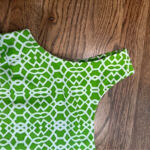 Jude Connally Lime Green & White Geometric Midi Dress