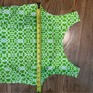 Sleeveless midi dress with bold geometric pattern. Lightweight, breathable fabric. Defined waist with a softly gathered skirt. Easy, polished look for daytime or events. Please see photos for actual measurements!