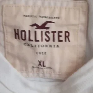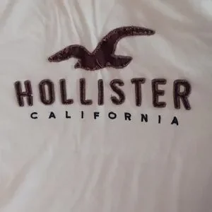 Soft-looking Hollister short sleeve tee. Prominent dark seagull graphic above bold brand text. Clean, simple style for casual wear.