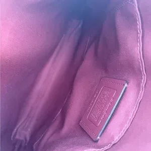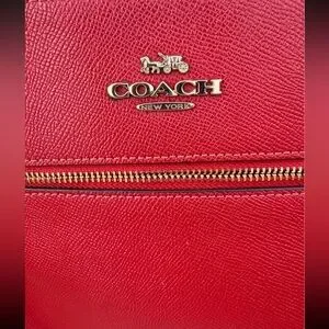 Compact Coach crossbody in vibrant red leather. Adjustable strap for hands-free wear. Front zip pocket for quick access. Gold-tone logo and zipper accents. Clean, modern silhouette for everyday use.