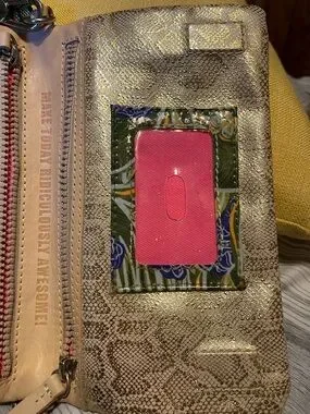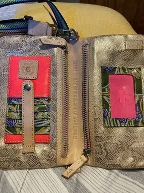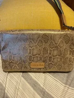 Consuela Taupe Snake-Print Crossbody with Colorful Woven Strap