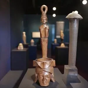 Enhance your space with this artistic brown folk art sculpture from the Philippines. Its unique design adds a touch of elegance to any room.