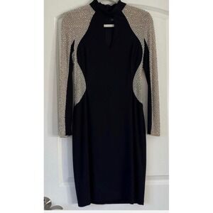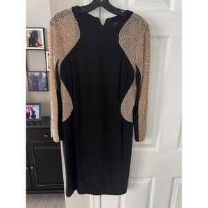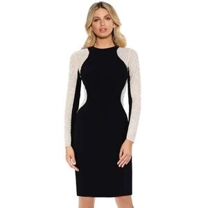 Xscape Black Beaded Illusion Long Sleeve Sheath Dress Size 14 Cocktail Party