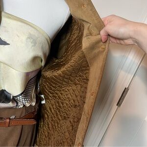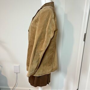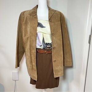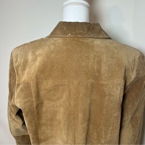 NY & Co suede jacket, New York & Company leather jacket, vintage suede leather, tan camel suede, 90s Y2K suede outerwear, oversized suede jacket, leather layering piece, casual suede coat, genuine suede outerwear, button-up suede