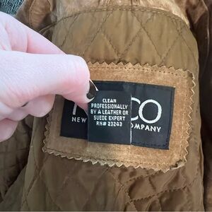 Suede leather jackets sold by NY & Co. that look similar in shape, finish, and tag style are commonly described on resale sites as vintage from the 1990s to early 2000s (Y2K era).