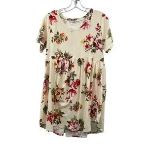 Jodifl Womens Floral Babydoll Dress Short Sleeve Multicolor Size Medium