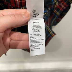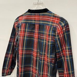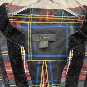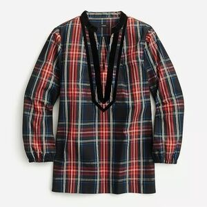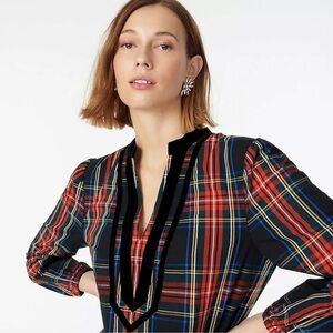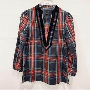 J. Crew Velvet-Trimmed V-Neck Tunic In Black Stewart Tartan Size XS Holiday