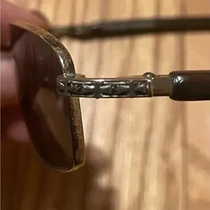 Chrome Hearts men's rectangular sunglasses. Brown tinted lenses with a gold metal frame. Slim temples with subtle brand detailing. Classic, versatile sunwear.