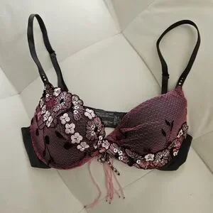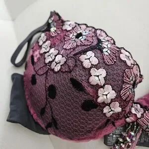 Belly Dance Victoria's Secret Pink And Grey Floral Embroidered Push-Up Bra
