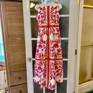 This stunning dress features impeccable Boden tailoring for a perfect fit. Size 6 relaxed is a true 6. Top-quality cotton with a touch of elastane for comfort and stretch. Fit and flare styling with a gorgeous pink and white print. New with tags. Originally $239.