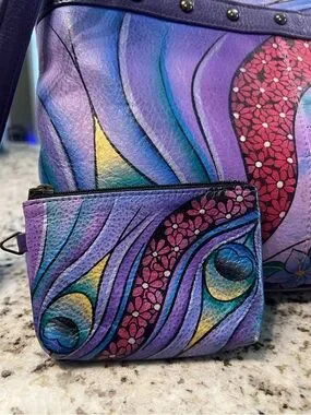 Anuschka Hand-Painted Leather Peacock Crossbody with Matching Coin Pouch