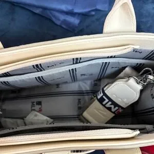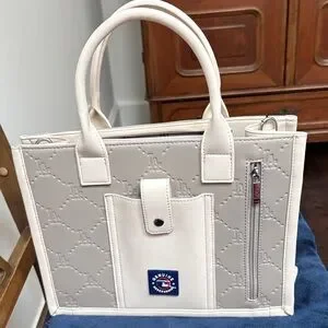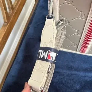 For the Ultimate Dodger Fan…Stylish beige tote with red baseball-stitch detailing and white LA logo. Lightweight and structured for everyday use. Beige color adds versatile, neutral appeal. Features bold red accents and a crisp white logo for sporty elegance.