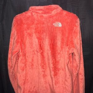 Soft plush fleece with full front zip. Zippered hand pockets. Embroidered The North Face logo on chest. Lightweight and warm layer.