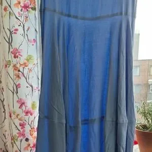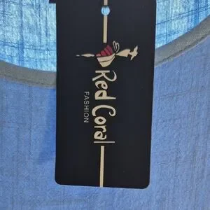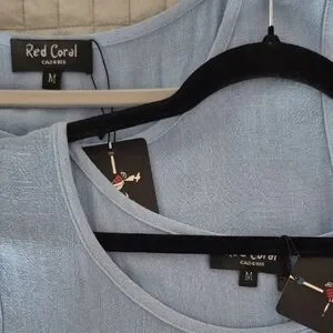 Red Coral Linen/Cotton Blue Sleeveless Dress (C36)