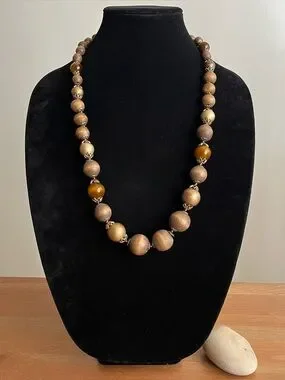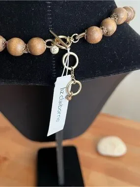 Liz Claiborne vintage costume jewelry necklace. Graduated wood and acrylic beads. Toggle closure gold tone. 28 + 1 inch.