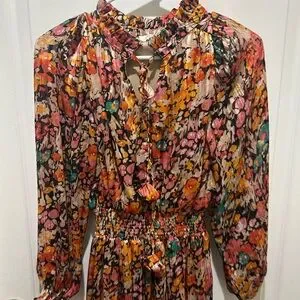 Umgee Women’s Floral Long Sleeve Tie-Neck Dress