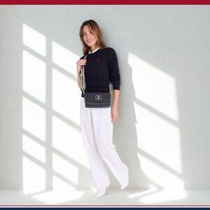 Features: Classic cable knit pattern in a versatile black shade, with ribbed trims on cuffs, neckline, and hem for a polished, secure fit. Made from soft, high-quality 100% cotton that feels great against the skin, perfect for layering or wearing on its own. The signature embroidered pony logo adds a subtle heritage touch, elevating this staple to something special.