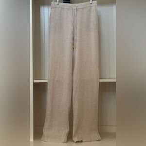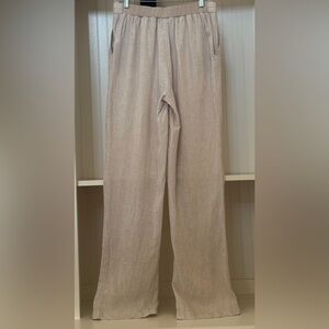 Ellen Tracy Linen Drawstring Pants | Size Small | Coastal Beige Wide Leg