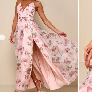 $98 Retail LULU's Floral Garden Theme Sexy Flowy Prom Wedding Chic Flowy Organza Maxi Dress NWOT (new without tags)