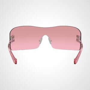 New MIU MIU Sunglasses Aube Silver Pink Mirror Rimless Wrap Authentic Womens