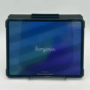 13” 7th generation Apple iPad Pro A2926 with 256GB in good pre-owned condition. Minor scratch on screen and wear around edges, as shown in photos. Includes gray protective flip case and charger. Unlocked and ready for pairing.