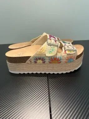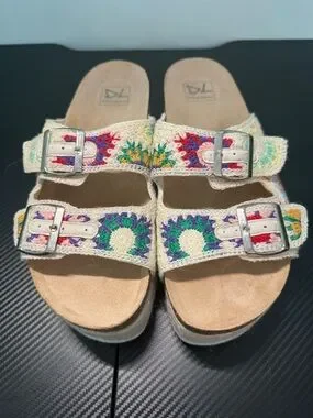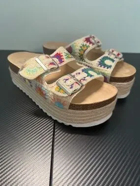 dirty laundry sandals crochet sandals platform sandals espadrille sandals floral sandals festival shoes summer wedges cottagecore hippie chic colorful sandals womens size 8.5 euro 39 buckle sandals resort wear Birkenstock style medium heel spring summer Easter Mother's Day Boho hippie grannycore comfort slides espadrilles