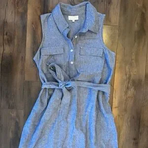 Mud Pie Chambray Belted Midi Dress S | Summer Casual Blue Button Front