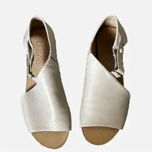Bueno Kale Leather Asymmetrical Open-Toe Sandals Tusk Cream 39