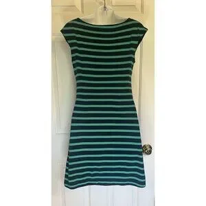 Loft Navy/Green Striped Dress Size Small Pit to Pit - 18" Length - 34" Good Used Condition