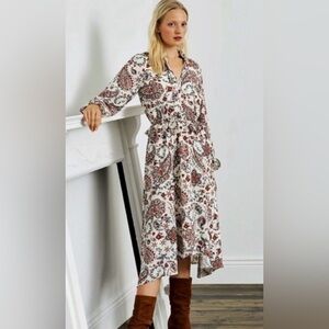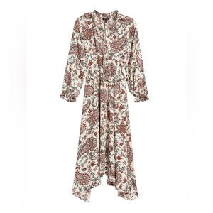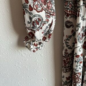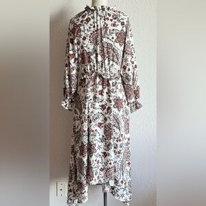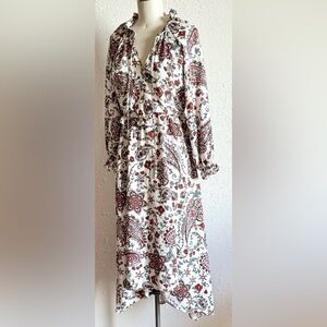 Size 14 Banana Republic Cream Paisley Midi Dress with Rust Accents