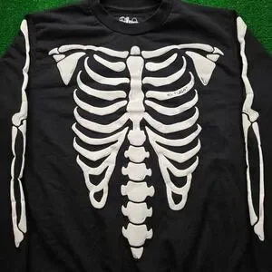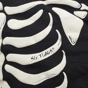Six Flags Skeleton Sweatshirt Mens Medium Black Fright Fest Halloween Rib Cage