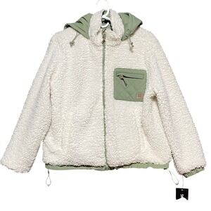 Billabong Northern Shore Hooded Sherpa Fleece Jacket Sea Spray L Quilted Lining
