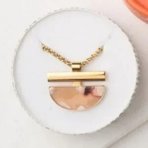 The unique marbled resin pendant, gold bar and chunky chain make the Melanie Necklace chic, trendy and a little edgy.