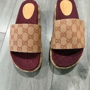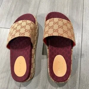 Slide Sandals with Burgundy