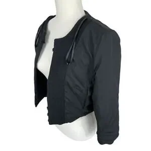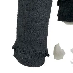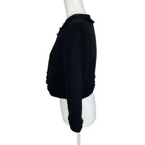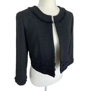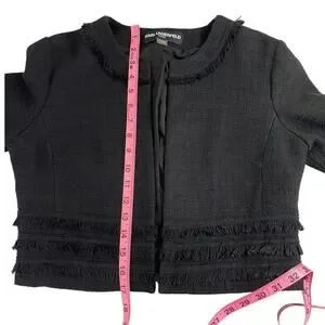 Karl Lagerfeld Paris Tweed Cropped Blazer Jacket Fringe Black Size Small Chic