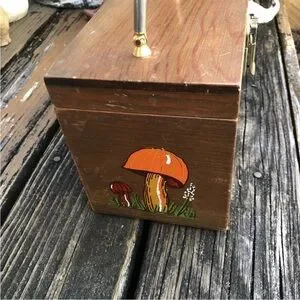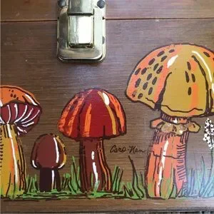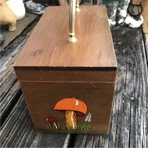 Caro Nan Mushroom Wood Purse Handbag Bag Metal Handle Red Orange Vintage 60s 70s