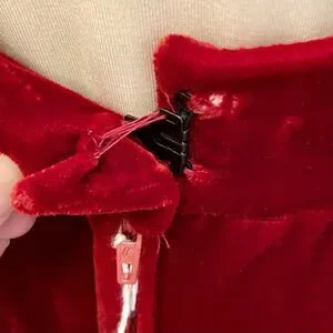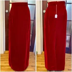 Late 1960s cranberry red plush velvet hippie does Victorian maxi skirt. Will be great during the holidays, but tbh will look just as great this spring with a halter top.