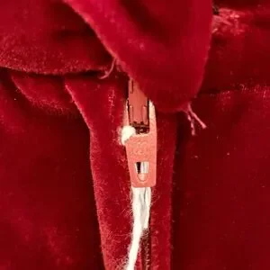 Condition: Good vintage condition. There are a few stains lower down on the skirt as well as some pile damage, not major, but visible if you look. The bar for the closure at the top of the zipper is pulling away from the fabric and needs to be reinforced. Price reflects.