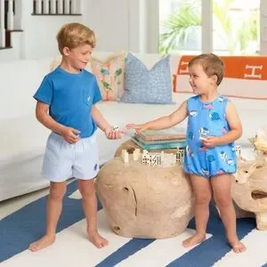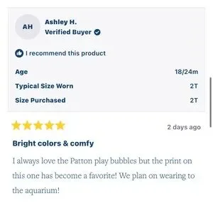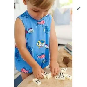 This playful Patton Play Bubble in Here Fishy Fishy will make your little one be the cutest one on the beach! The whimsical fish pattern captures fun, coastal spirit while the comfortable bubble design lets him move, play, and explore all day long. It's the go-to piece for beach trips, poolside hangs, or anywhere adventure calls—because when an outfit is this fun and functional, you'1l find yourself reaching for it again and again!